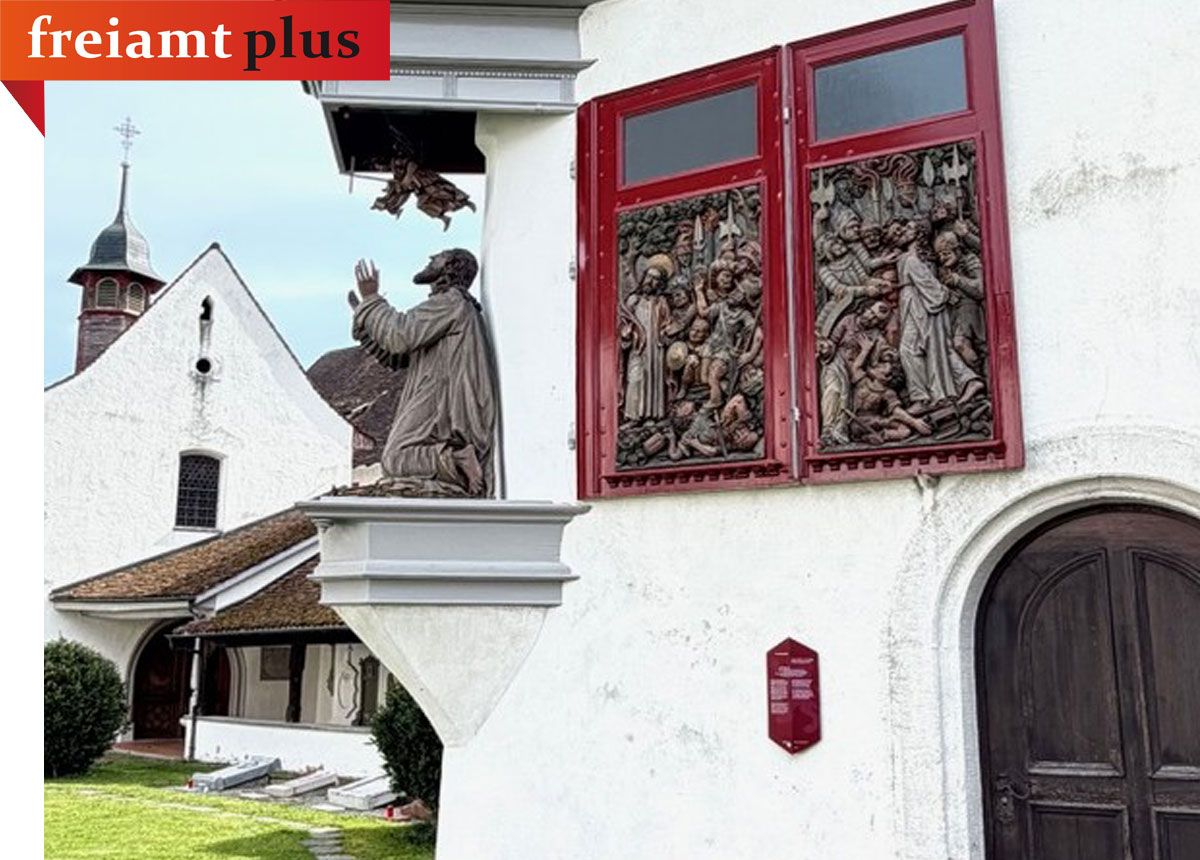 An den Ostertagen findet man manchmal neben den Aktivitäten auch Momente der Ruhe und Zeit für einen Spaziergang. Dabei entdeckt man Objekte, von denen man schon mal gehört, aber noch nie beachtet und das hinter den Flügel Aufbewahrte betrachtet hat, wie bei der St. Annakapelle des Kirchhofs. An dieser Stelle stand seit 1400 ein Beinhaus, das im 17.Jahrhundert mit dem heutigen Chor erweitert wurde. Bei der Erweiterung entstand etwas «Seltsames», denn die Aussenwand wurde mit einem Erker versehen. Darin findet man den Bremgarter Ölberg, der 1646 vom Künstler Gregor Allhelg geschaffen wurde. Neben der Christusfigur zeigen drei farbig gefasste Reliefs mit den schlafenden Jüngern im Garten Gethsemane, dem Verrat und die Gefangennahme Christi.