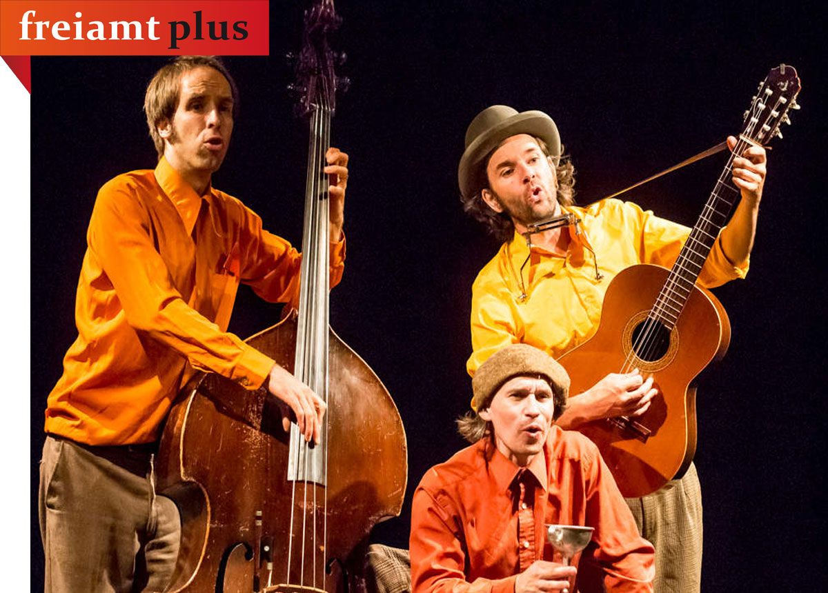 Das Trio Mänu, Mättu und Simu singen sich unbekümmert im Kellertheater Bremgarten durch Mani Matters Lieder.