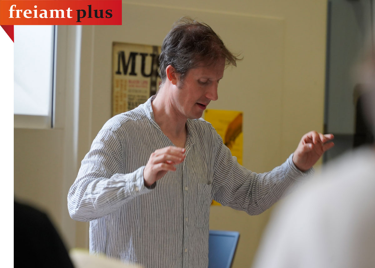 Es wird intensiv geprobt! Zweimal pro Woche treffen sich die Sänger:innen des Singkonvents Freiamt unter der Leitung von Walter Siegel, um an den Werken zu feilen, die Intonation zu perfektionieren und die Dynamik schlüssig zu gestalten. Sie alle freuen sich auf den Moment, wenn sie die Klosterkirche Muri mit Klang füllen können.